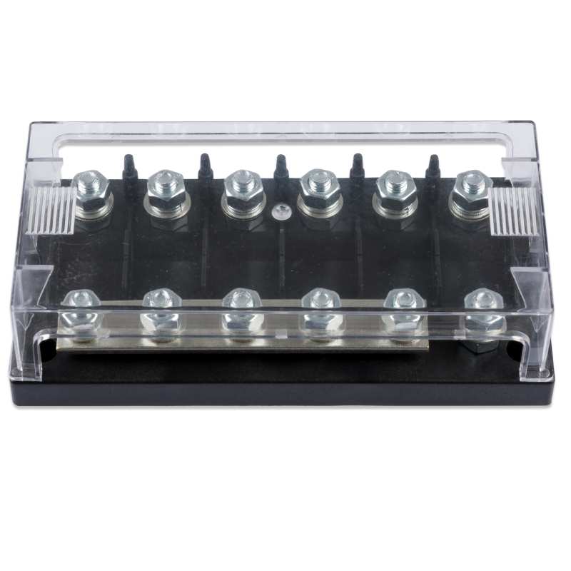 El porta-fusibles MEGA de 6 vías Victron Energy es una solución robusta y profesional para la distribución y protección de circuitos en sistemas eléctricos de corriente continua. Está especialmente indicado para instalaciones solares, sistemas marinos, vehículos industriales y aplicaciones off-grid donde se requiere una protección fiable y ordenada de múltiples líneas de alta intensidad.