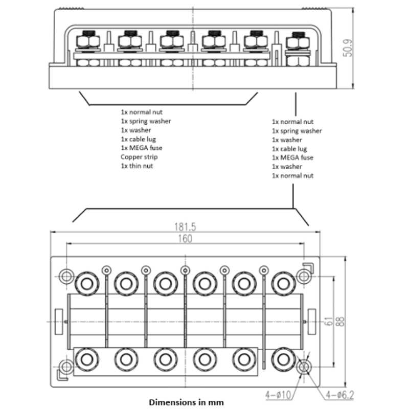 Número de vías: 6 fusibles MEGA