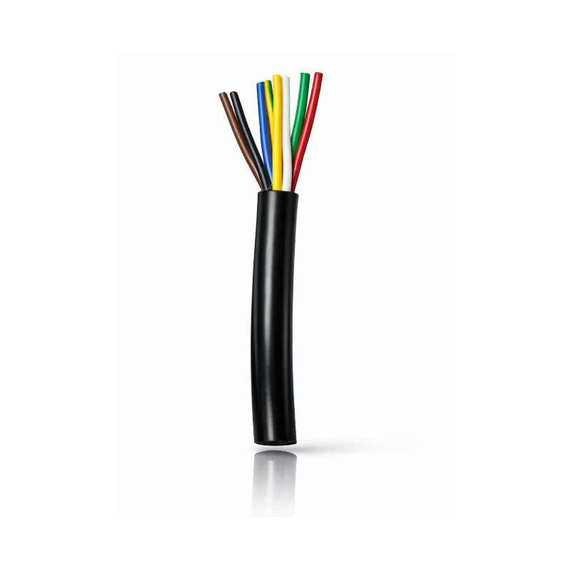 Mangueira eléctrica de 7 fios de 1mm. em diferentes cores, válida para qualquer instalação industrial que requeira estas condições, embora seja muito utilizada no sector dos reboques para fazer a instalação que vai desde o ananás/conetor do veículo até à zona das luzes do reboque.